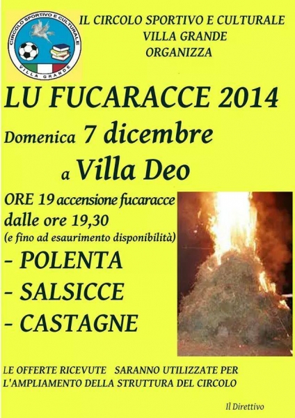 Dopo il successo della riproposizione dei giochi popolari dello scorso agosto, il circolo organizza il tradizionale "Fucaracce" o falò della vigilia dell'immacolata concezione, antica usanza radicata nella cultura popolare locale, la cui origine si perde nella notte dei tempi.
